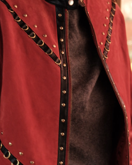 Step into timeless sophistication with this red suede statement piece, a BB VINTAGE exclusive crafted from buttery-soft red suede leather. Its tailored silhouette, smooth inner lining, and vintage-inspired detailing capture the essence of classic style with a modern edge. Whether draped over your shoulders for an evening out or paired with denim for daytime chic, this piece exudes effortless elegance and enduring allure — a true wardrobe heirloom